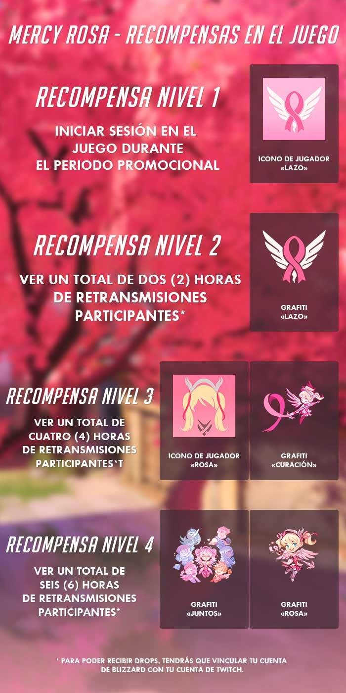 Blizzard quiere ayudar en lo posible desde su popular juego Overwatch lanzado una campaña para recaudar fondos para la lucha contra el cáncer de mama. Para ello ha lanzado una nueva skin de Mercy donde, todo lo que se recaude con Mercy Rosa, irá destinado a la investigación contra el cáncer por parte de la fundación Breast Cancer Research Foundation.