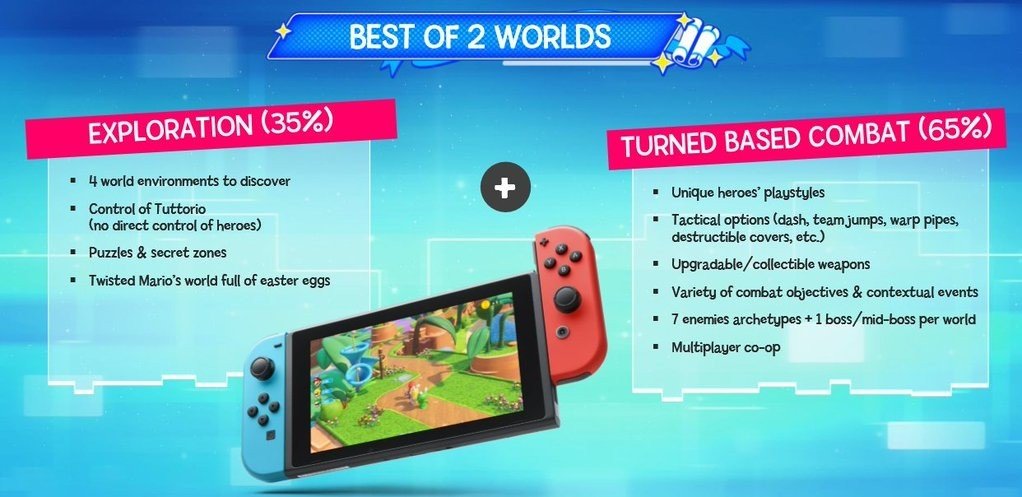 Después de mostrar esta imagen han salido a la luz unas cuantas más explicando algunos de los detalles de este juego. La primera es que este juego está siendo desarrollado por Ubisoft París y Milán. Otro de los detalles es que la exploración será un 35% del juego y el 65% restante será combate que vendrá en forma de RPG mucho más táctico que lo visto los Mario RPG.