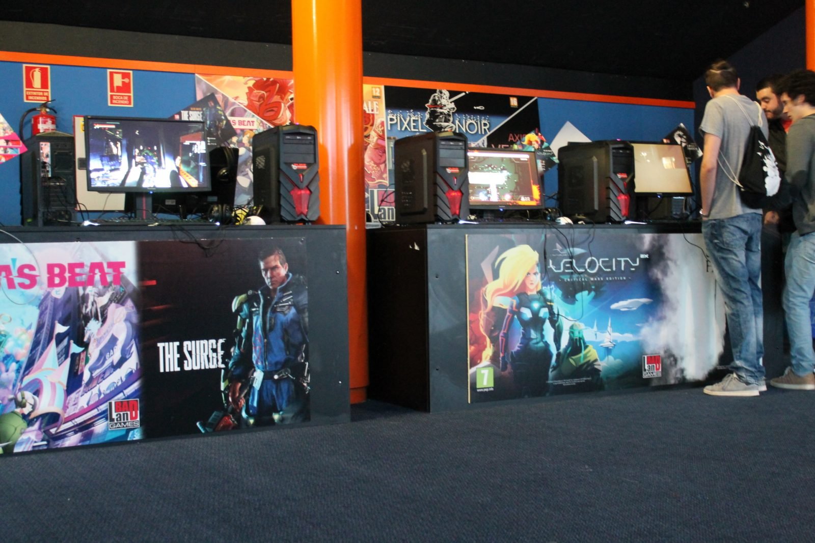 El siguiente stand fue, sin duda, nuestro favorito: BadLand Games. En esta ocasión llevaron: Akiras Beat, The Sexy brutale, Pixel Noir, Axion Verge, Song of Horror, Velocity y el juego que más nos gusto, The Surge. Todos y cada uno de los juegos nos tuvo enganchados bastante tiempo y pudimos disfrutar con ellos. Sobretodo destacamos The Surge. El juego nos recordó a Dark Souls o Bloodborne pero con un matiz y una personalidad propia que hacía que, siendo una fórmula parecida, pareciese un género completamente nuevo. Sin duda pondremos mucho ojo sobre este juego.