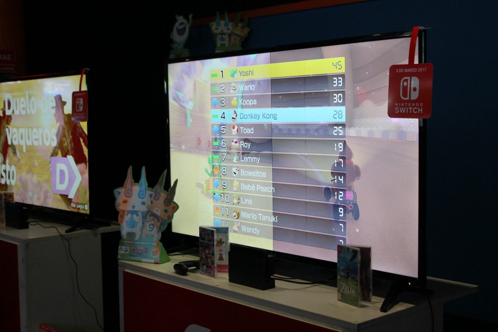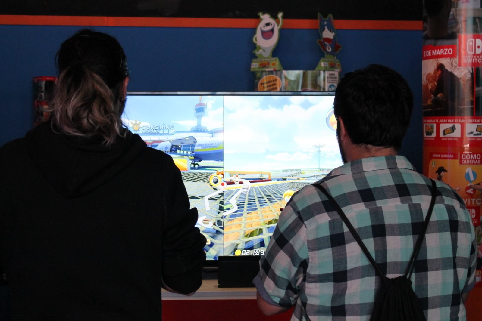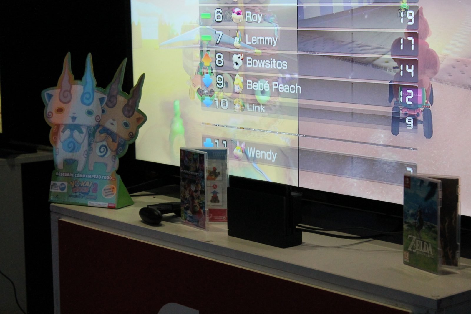 Para hacer tiempo hasta las cinco de la tarde nos pasamos por los diversos stands. Primero tuvimos la oportunidad de jugar a Mario Kart Deluxe 8 en Switch. Era nuestra primera toma de contacto y la verdad es que fue bastante buena. Además el chico que estaba allí nos enseñó como era Switch en sus diferentes modalidades. Como siempre he dicho, los que tenemos las manos un poco grandes, lo pasamos mal con los mandos de esta consola. Me siguen pareciendo demasiado pequeños algo lógico, no obstante, para encajar con la base. A continuación pasamos a jugar a 1, 2, Switch.